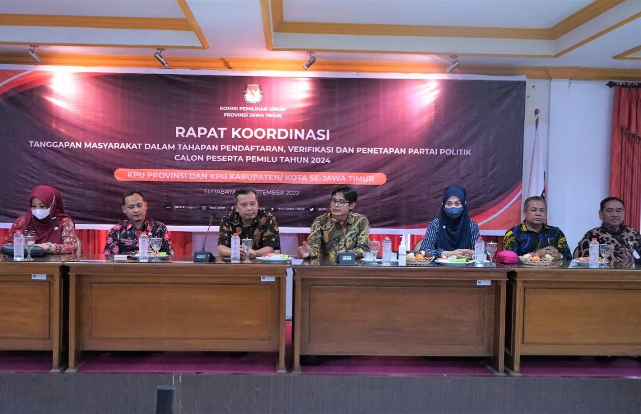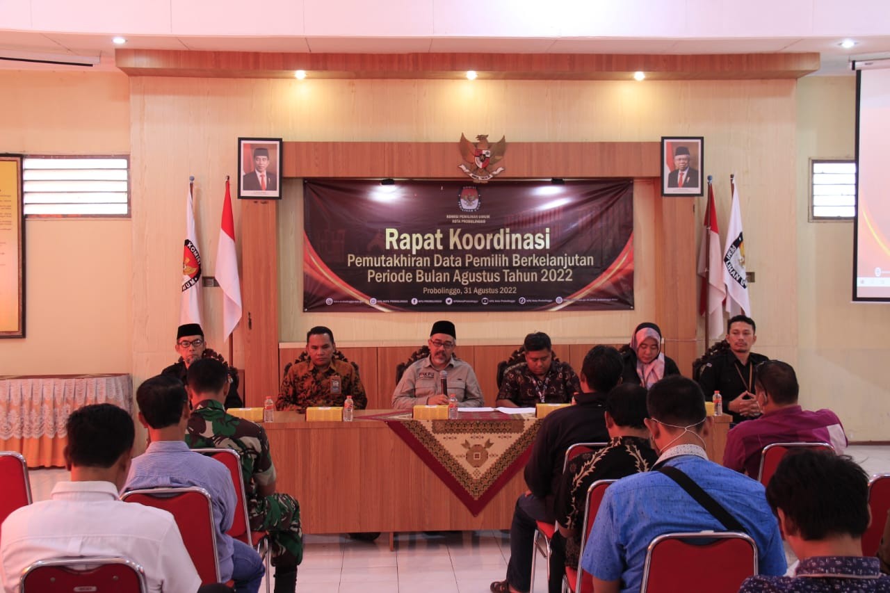 PROBOLINGGO, KPU Kota Probolinggo – Rapat Koordinasi (rakor) Daftar Pemilih Berkelanjutan (DPB) periode Agustus 2022 yang digelar KPU Kota Probolinggo, Rabu (31/8/2022), mencatat ada 165.311 jumlah pemilih. Terdiri dari 80.517 pemilih laki-laki dan 84.794 pemilih perempuan. Komisioner KPU Kota Probolinggo Muhammad Derajad mengatakan, data tersebut merupakan hasil rekapitulasi dari sejumlah elemen. “Mulai potensi pemilih baru, pemilih TMS (Tidak Memenuhi Syarat, Red), maupun perbaikan data pemilih,” ujar komisioner yang membidangi Divisi Perencanaan, Data, dan Informasi tersebut. Rinciannya, potensi pemilih baru berjumlah 77 orang dengan rincian 36 pemilih laki-laki dan 41 pemilih perempuan. Kemudian pemilih TMS berjumlah 4.686 orang dengan rincian 2.338 pemilih laki-laki dan 2.348 pemiih perempuan. Selain itu, ada 2.219 orang hasil perbaikan data pemilih, terdiri dari 1.200 pemilih laki-laki dan 1.019 pemilih perempuan. Pria yang akrab disapa Derajad itu mengatakan, pemilih TMS dan perbaikan data pemilih itu menindaklanjuti hasil pemadanan data yang dilakukan KPU RI dengan Kementerian Dalam Negeri (Kemendagri). “Tinggal sekali lagi rakor DPB di bulan September, karena selanjutnya kami akan melaksanakan tahapan mutarlih (pemutakhiran data pemilih, Red) Pemilu 2024,” katanya. Sementara itu, Ketua KPU Kota Probolinggo Ahmad Hudri mengatakan, pihaknya terus melakukan pembaharuan data untuk memastikan tidak satu pun warga negara yang punya hak pilih kehilangan haknya. “Kami juga mengimbau parpol untuk berperan serta dalam mengoptimalkan pembaharuan data ini,” katanya. Di sisi lain, anggota Bawaslu Kota Probolinggo Samsun Ninilouw mengatakan, pihaknya mengapresiasi kinerja KPU yang sudah optimal melaksanakan program tersebut. “Sejauh ini, kami melihat KPU telah bersungguh-sungguh untuk menjaga data pemilih ini. Kami sangat mengapresiasi,” katanya. Dalam rakor tersebut, hadir sejumlah undangan yang terdiri dari Bawaslu Kota Probolinggo, Polres Probolinggo Kota, Kodim 0820 Probolinggo, parpol peserta pemilu 2019, dan parpol calon peserta Pemilu 2024. (rdf)