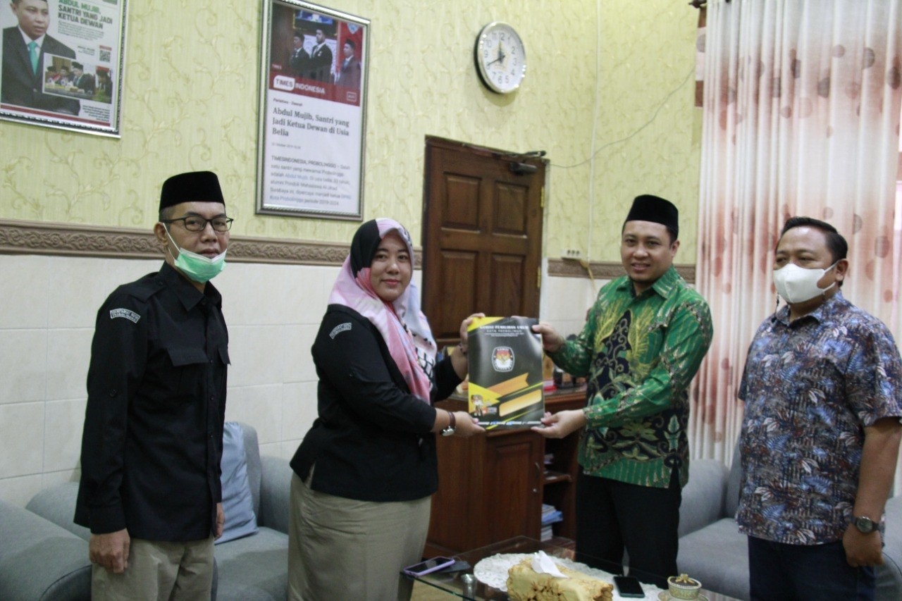 PROBOLINGGO, KPU Kota Probolinggo – KPU Kota Probolinggo dan Sekolah Tinggi Agama Islam (STAI) Muhammadiyah Probolinggo, tengah menggodok rencana kerjasama di bidang pendidikan demokrasi. Tujuannya dari kerjasama tersebut, mahasiswa mendalami kepemiluan serta berperan aktif dalam menyukseskan Pemilu dan Pemilihan. Hal itu terungkap saat KPU berkunjung ke STAI Muhammadiyah, Selasa (2/11/2021). Dalam kunjungan tersebut, KPU diterima langsung Ketua STAI Muhammadiyah Benny Prasetiya, Wakil Ketua II Bidang Administrasi dan SDM Aries Dirgayunita, Wakil Ketua III Bidang Kemahasiswaan Muhammad Alfi Syahrin, dan Kaprodi Hukum Keluarga Islam (HKI) Immanuddin Abil Fida. Ketua KPU Kota Probolinggo Ahmad Hudri mengatakan, perguruan tinggi merupakan salah satu mitra strategis KPU dalam melakukan pendidikan pemilih berkaitan dengan demokrasi dan kepemiluan. “Di antaranya STAI Muhammadiyah yang perkembangannya sangat luar biasa,” terangnya. Karena itu, KPU menawarkan kerjasama pada perguruan tinggi yang didirikan tahun 1986 tersebut. Bentuknya sharing knowledge dalam perkuliahan pada mahasiswa. Detail mengenai kerjasama tersebut akan didiskusikan kembali dalam waktu dekat. STAI Muhammadiyah sendiri merespons positif rencana kerjasama tersebut. “Kami menyambut baik rencana kerjasama tersebut,” kata akademisi yang baru dua pekan dilantik sebagai ketua tersebut. Benny -sapaan akrabnya- juga berharap, kerjasama tersebut juga sebagai cikal bakal banyaknya riset di kampusnya mengenai kepemiluan. Dalam kesempatan itu, Komisioner KPU Divisi Teknis Penyelenggaraan Upik Raudhotul Hasanah banyak mengulas mengenai pelaksanaan Pemilu maupun Pemilihan. Termasuk beragam aplikasi yang digunakan. “Ini penting diketahui masyarakat, terutama kalangan kampus. Bahwa KPU terus berupaya memudahkan pelaksanaanya,” jelasnya. (rdf)