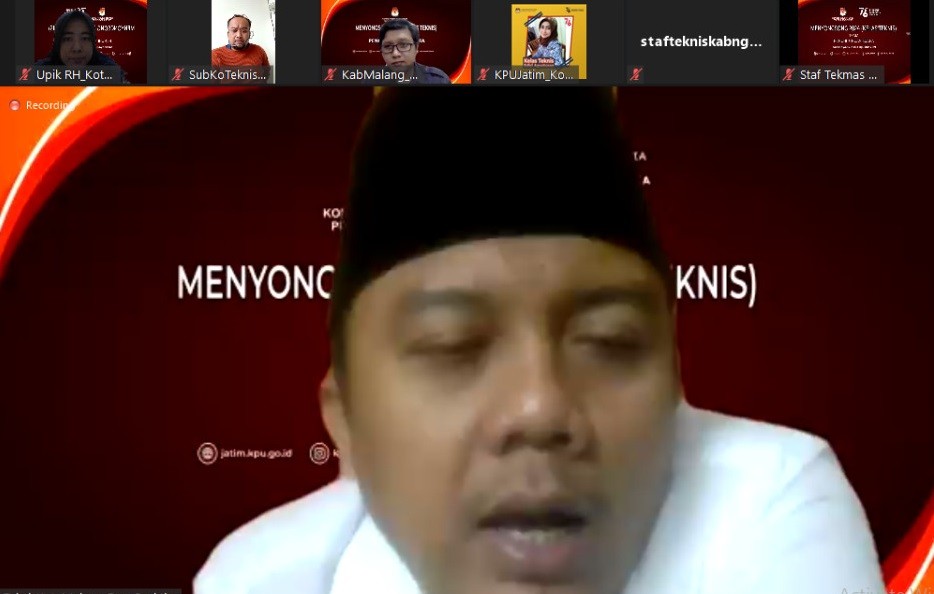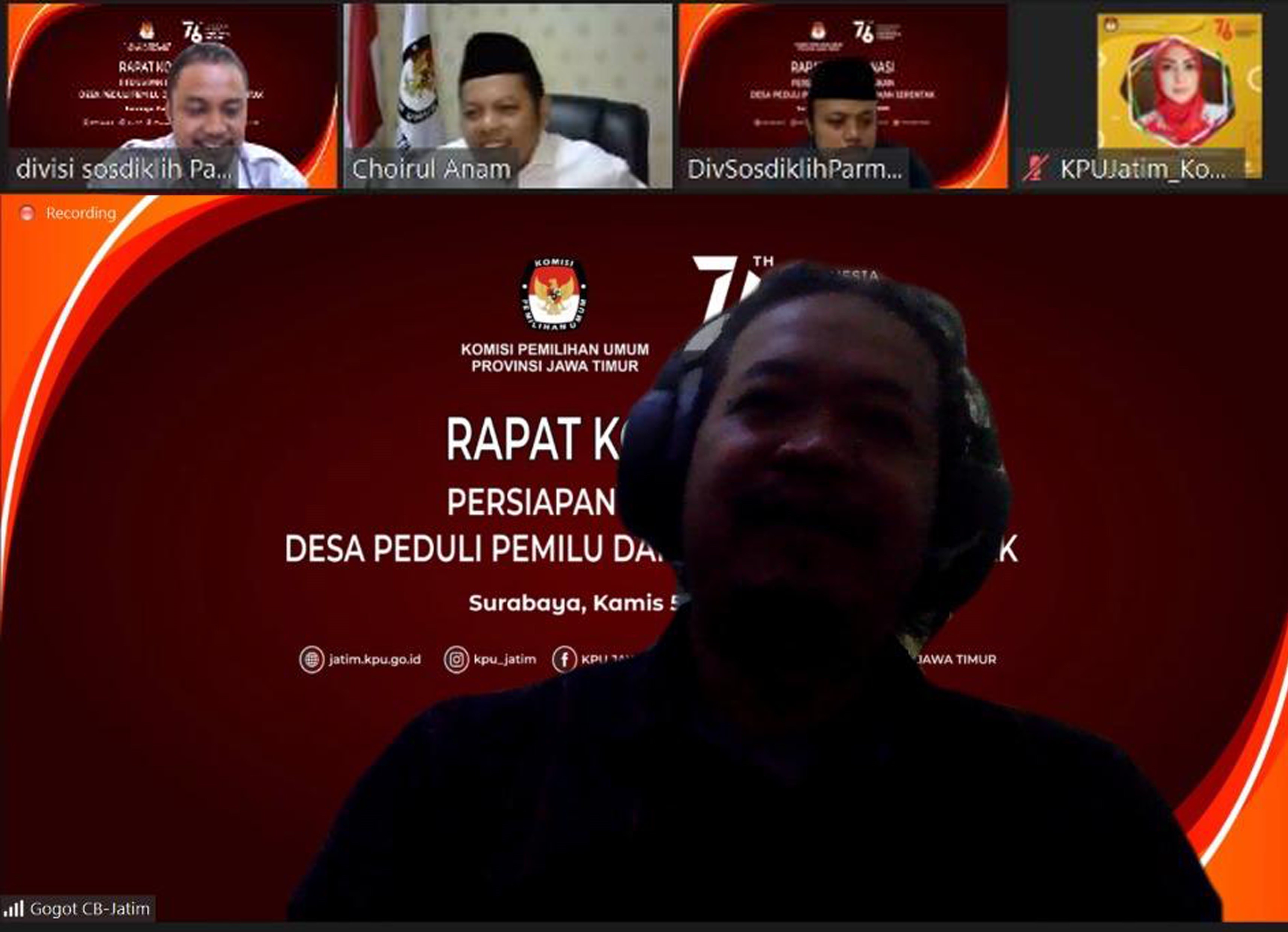 SURABAYA, KPU Kota Probolinggo - Ketua KPU Provinsi Jawa Timur Choirul Anam membuka Rapat Koordinasi Persiapan Pembentukan Desa Peduli Pemilu dan Pemilihan (DP3) yang digelar, Kamis (5/8/2021). Dalam rakor tersebut, disampaikan sejumlah hal mengenai pentingnya sosialisasi meski tidak didukung anggaran memadai. Komisioner yang akrab disapa Anam ini mengaku telah curhat pada KPU RI terkait minimnya anggaran sosialisasi. Ia juga meminta agar dibuatkan modul, agar sosialisasi dapat berjalan seirama dan meminimkan kendala dalam penyampaian materi kepada publik. Sementara itu, Komisoner KPU Jatim Divisi Sosdiklih Parmas Gogot Cahyo Baskoro berharap agar KPU Kabupaten/Kota melakukan beragam kreasi sosialisasi dan tidak berhenti membangun citra positif lembaga. Ia menjelaskan, pandemi membuat masyarakat apatis terhadap penyelenggara negara. Isu kepemiluan pun tidak menjadi atensi publik. Menginisiasi kegiatan yang mengangkat isu elektoral bekerjasama dengan stakeholder terkait, perlu dilakukan. Tidak kalah penting adalah memperbanyak kegiatan sosialisasi non anggaran. “Meskipun tidak didukung anggaran, bukan berarti tidak ada yang dikerjakan. Bikin kegiatan sekreatif mungkin. Saya minta teman-teman Parmas se-Jatim membuat kegiatan besar sebulan sekali. Entah itu webinar atau diskusi, yang tidak memerlukan anggaran. Nanti saya minta laporannya,” katanya. Dalam kesempatan itu, komisioner KPU Kabupaten/Kota diberikan kesempatan untuk menyampaikan desa/kelurahan yang diusulkan. Termasuk koordonasi yang telah dilakukan dengan pihak terkait. Dalam rekap KPU Jatim, ada 54 usulan kategori daerah partisipasi terendah, 4 usulan kategori potensi pelanggaran pemilu tinggi, 5 usulan kategori rawan konflik, serta 11 usulan kategori rawan bencana. Gogot -sapaan akrabnya- berpesan agar KPU Kabupaten/Kota memasukkan program DP3 ini ke dalam anggaran hibah pemilihan 2024. Harapannya tidak ada kendala anggaran ketika program ini diserentakkan oleh KPU RI. Ia juga mengimbau pemilihan daerah sosialisasi dalam program DP3 tak hanya analisa di atas kertas, tapi harus melalui kajian. (ori/sp)