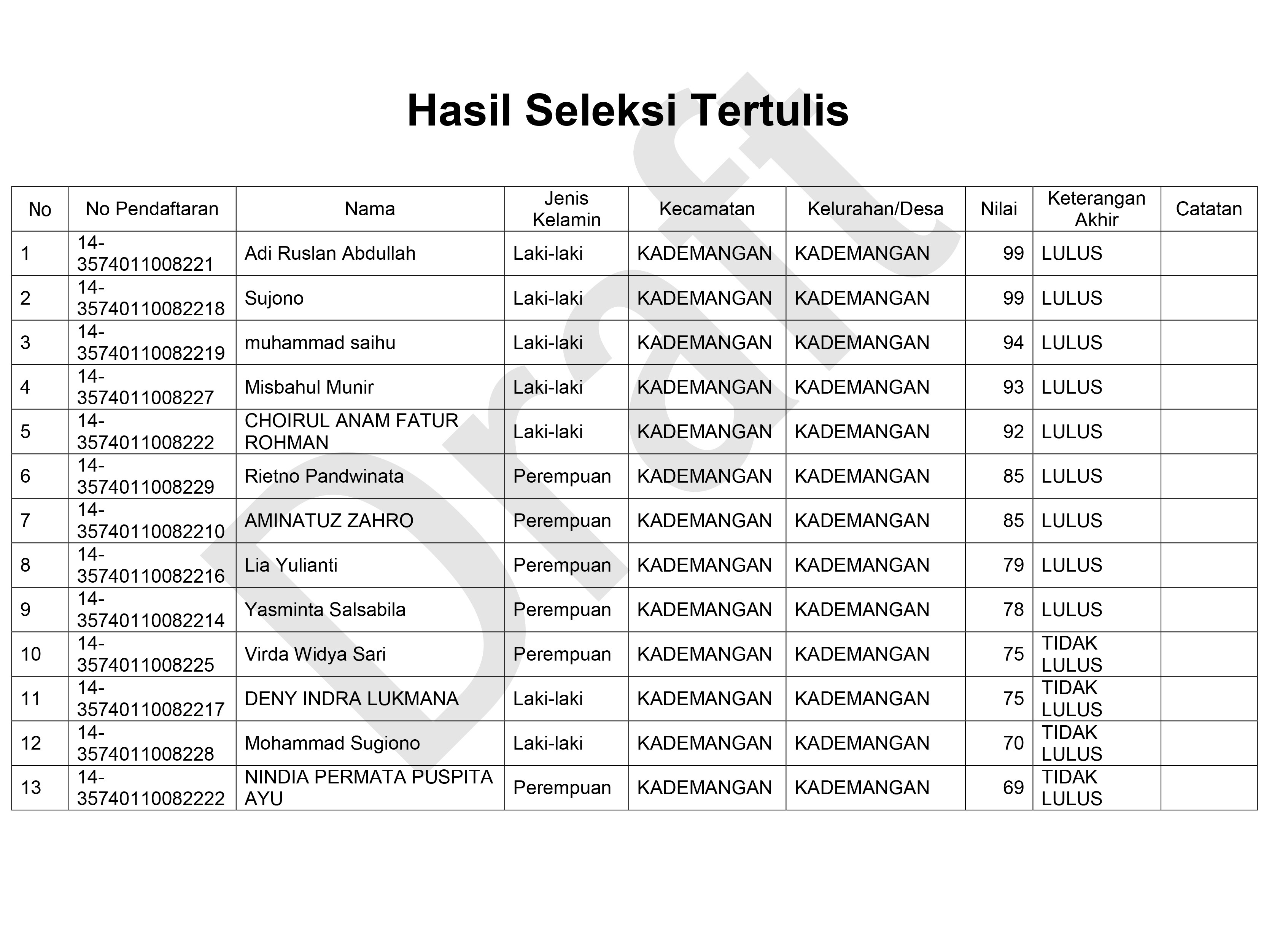 KPU Kota Probolinggo Mengeluarkan Pengumuman Tentang Hasil Seleksi Tertulis Calon Anggota Panitia Pemungutan Suara untuk Pemilihan Umum Tahun 2024
